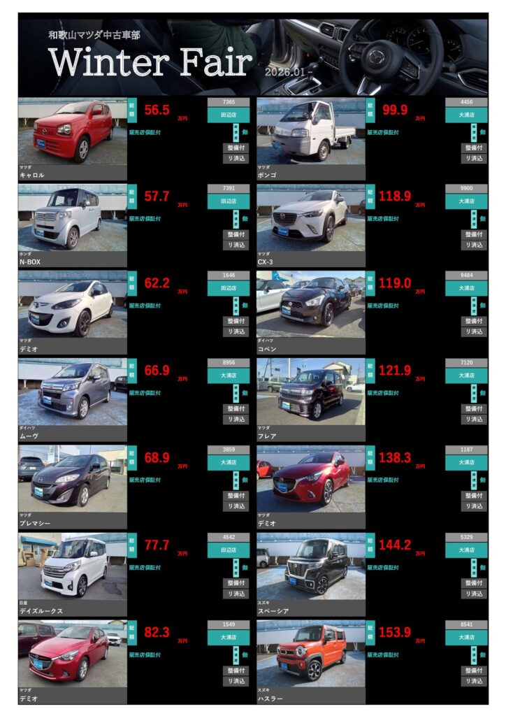 和歌山マツダでは、1月4日~12日まで、新春初売り実施中!