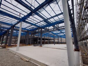 さて、工事の進捗ですが、ショールームの床(土間コンクリート)が打ち終わったところです。