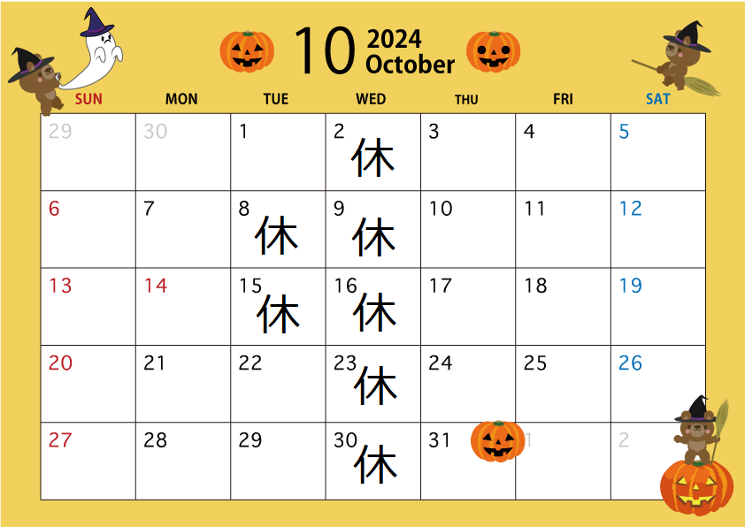 さて、今回は10月の定休日についてご案内