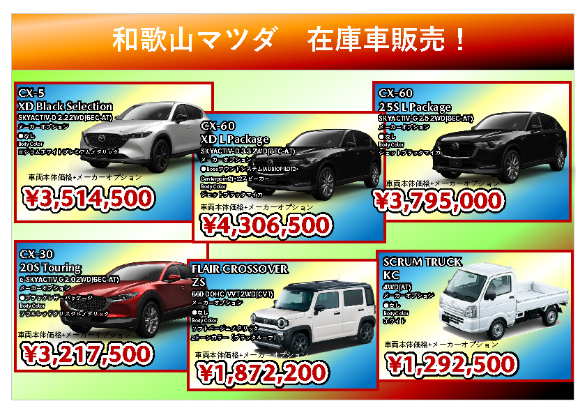 本日は、和歌山マツダ在庫車販売のお知らせです!