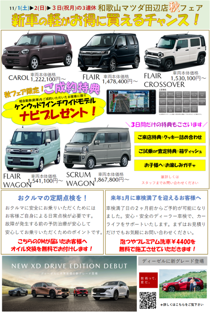 【新車の軽自動車がお得に買えるチャンス!】のお知らせです。